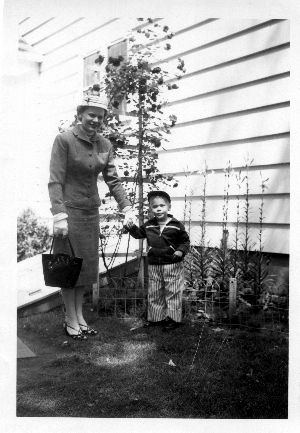Bill and mother, Francelia, in the garden at their Sprinfield, MA home (circa 1960).